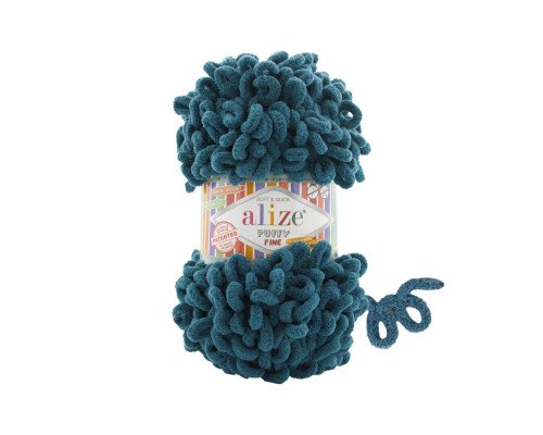 - Alize Puffy Fine — вариант с более мелкими петлями, удобный для вязания одежды и аксессуаров с более аккуратным рисунком.