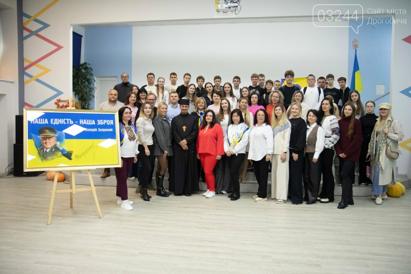 Зустріч з отцем Макарієм Дуткою, в якій взяли участь вчителі, батьки та учні, пройшла у чудовій приязній атмосфері. Отець розповів про життя в монастирі, про волонтерство та свою спортивну кар’єру, про знайомство з Валерієм Залужним. До речі, на знак вдячності для школи за зібрані кошти о. Макарій Дутка привіз подарунок – прапор з особистим підписом Валерія Залужного, котрий в 2022-2023 роках стояв на чолі оборони України від ворога.