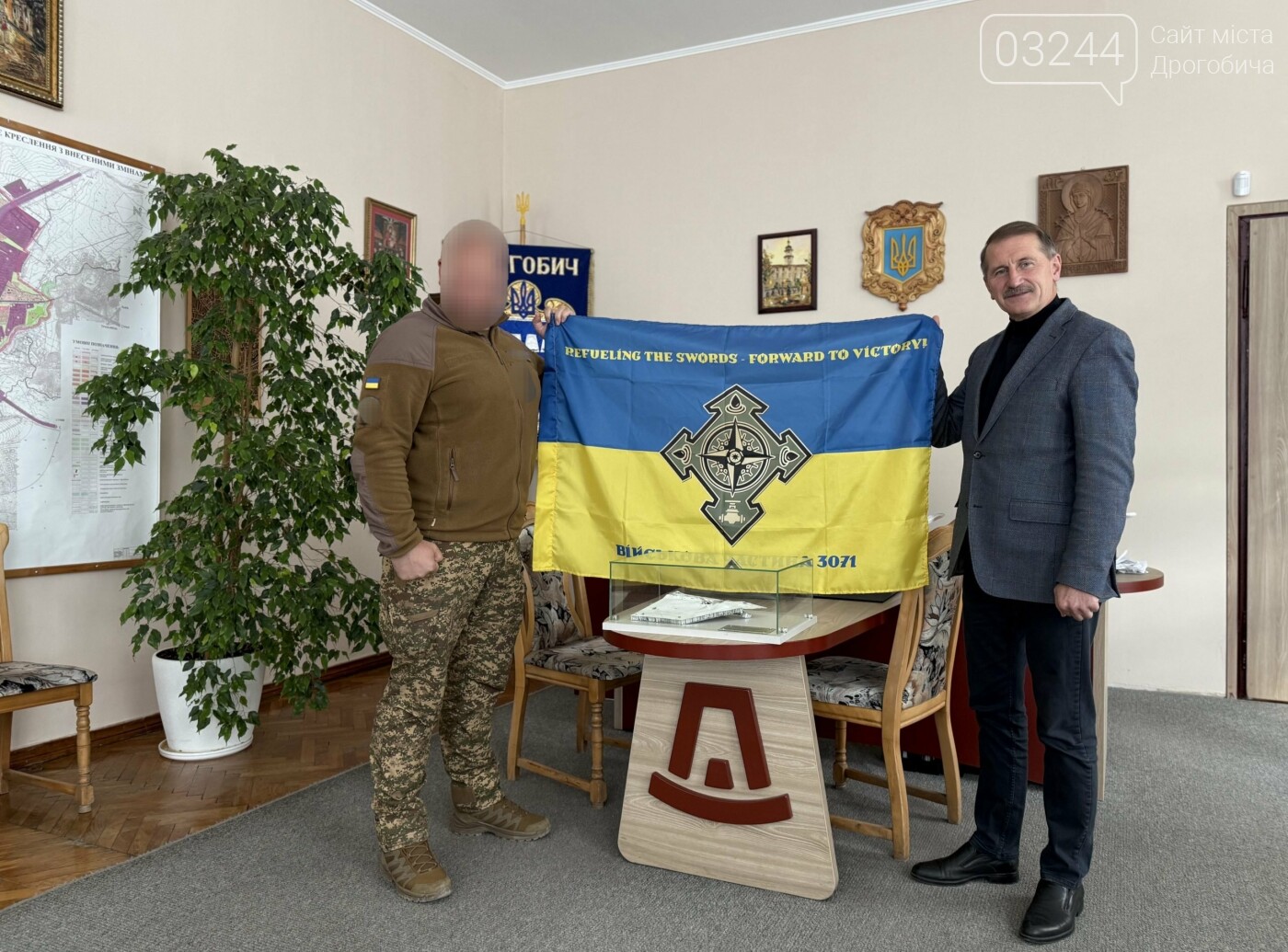 Дрогобич отримав прапор від військової частини 3071 як знак вдячності за підтримку